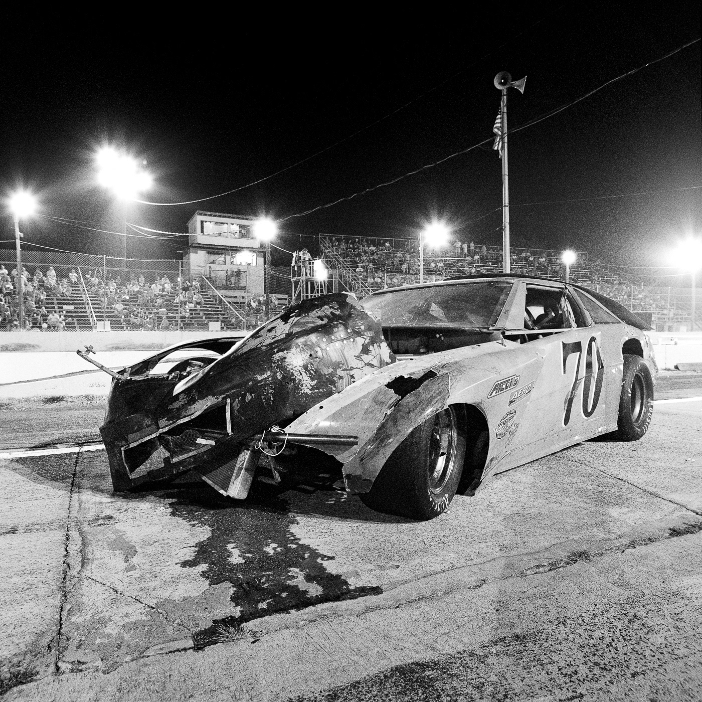 This series of photographic prints documents the visual character of Wake County Speedway, a non-sanctioned, 'outlaw' track where drivers (some too young to get a driver's license) spend summer nights racing cars that are put together and kept rolling by friends and family.